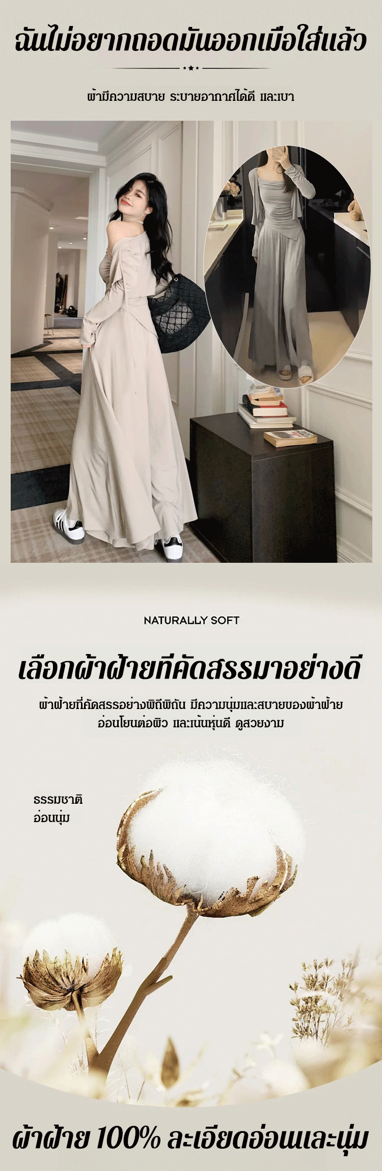 ชุดเซ็ทคาร์ดิแกนเสื้อสายเดี่ยว ชายเสื้อไม่สม่ำเสมอ ชุด 3 ชิ้น ดูผอม สำหรับผู้หญิง