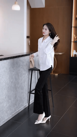 เสื้อเชิ้ตดีไซน์เรียบง่ายพร้อมเชือกรูด